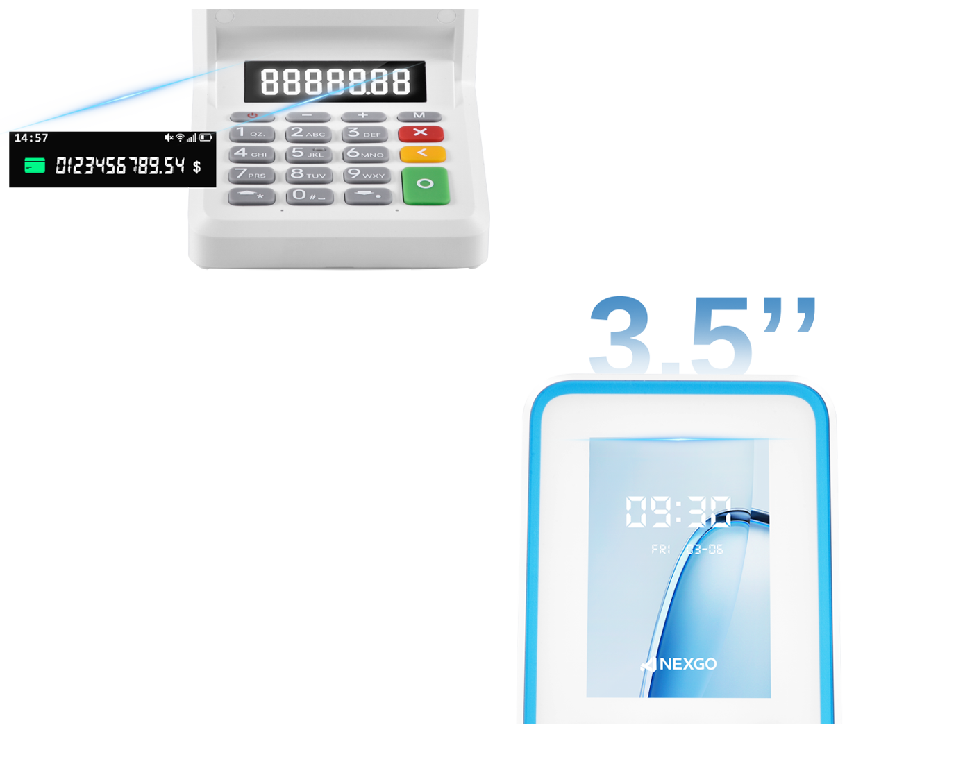 3.5” front color display: shows dynamic QR codes and transaction details clearly.
